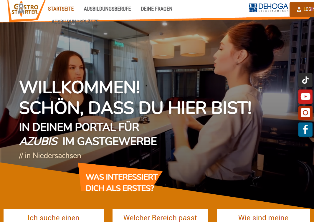 Mit der groß angelegten Web- und Social-Media-Kampagne GastroStarter.de wirbt der DEHOGA Niedersachsen online über soziale Medien für die Ausbildung im Gastgewerbe.