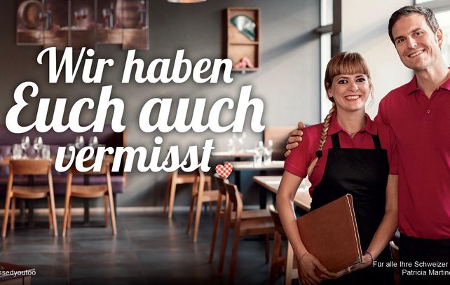 Der Branchenverband GastroSuisse startet heute eine landesweite Marketingkampagne. Mit der Botschaft "Wir haben Euch auch vermisst" bringt die Kampagne die Freude des Gastgewerbes auf das Wiedersehen mit seinen Gästen nach dem Corona-Lockdown zum Ausdruck.