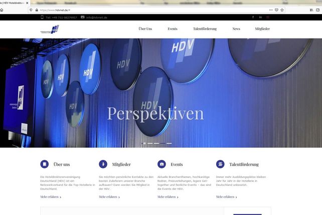 Die Hoteldirektorenvereinigung Deutschland (HDV) präsentiert ihren neuen Internetauftritt www.hdvnet.de. Auf der Startseite werden unter der Überschrift „Netzwerk, Impulse, Synergien, Perspektiven“ nun zum Beispiel die Aktivitäten des Verbandes dargestellt. Hier finden sich auch aktuelle HDV-News und Updates zu den Verbands-Veranstaltungen.
