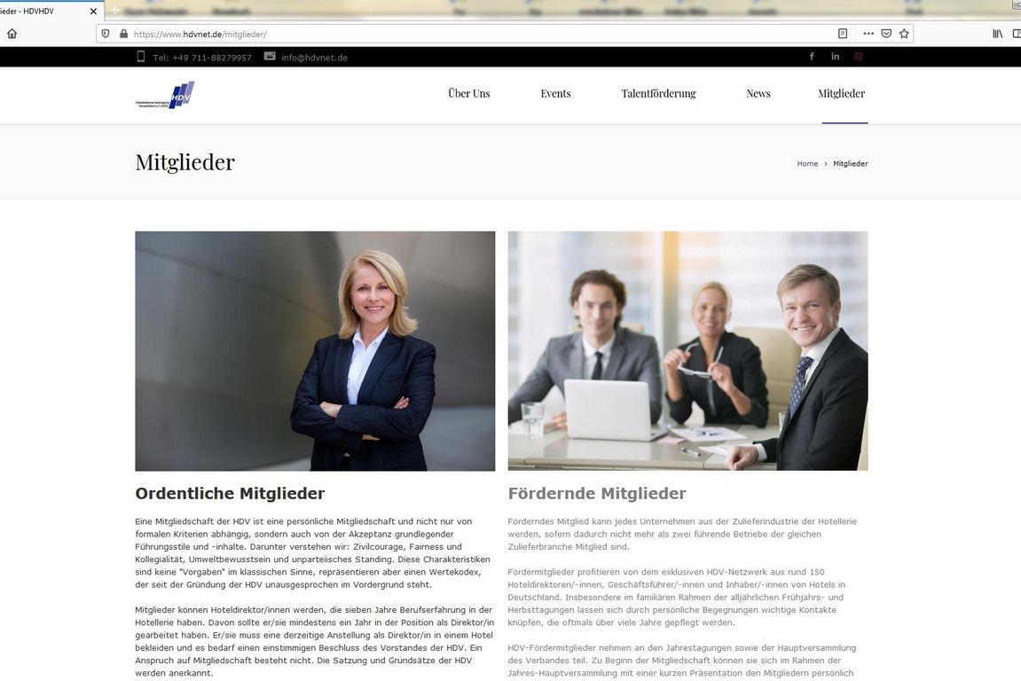 Die Navigation ermöglicht einen Überblick über das Engagement der HDV – von der Talentförderung bis zu den Events. Mitgliedern und Interessenten werden Informationen zur Mitgliedschaft in einem eigens eingerichteten Bereich zur Verfügung gestellt. Hinzu kommen Statements von Mitgliedern, die einen Einblick in ihre Erfahrungen mit der HDV geben.