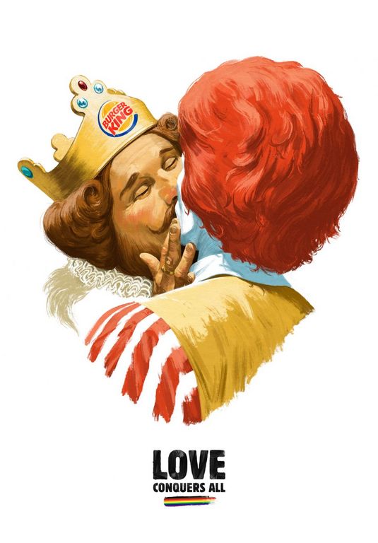 Normalerweise nimmt Burger King den Erzrivalen McDonald´s in der Werbung regelmäßig aufs Korn. Anlässlich des LGBT-Events "Helsinki Pride" hat Burger King diese Rivalität nun aber auf Eis gelegt und McDonald´s die Liebe gestanden.