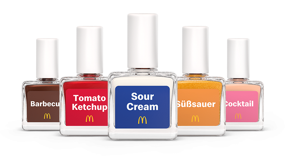 Unter der Überschrift „MyTaste – MyManicure“ präsentiert McDonald’s Österreich ab dem 29. August 2023 fünf Nagellacke in den Farben von Saucen. Das Fastfood für die Fingernägel ist in in allen McDonald’s Restaurants in Österreich für registrierte Nutzer des McDonald’s Bonusprogramms erhältlich.