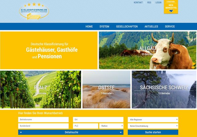 Die Deutsche Klassifizierung für Gasthöfe, Gasthäuser und Pensionen („G-Klassifizierung“) hat ihren Markenauftritt sowie ihre Webpräsenz modernisiert und online gestellt. Die neue Internetseite enthält, neben einem aktualisierten Layout, eine überarbeitete Struktur, eine prominent platzierte Betriebsuche sowie eine Sortierung nach beliebten deutschen Ferienregionen.