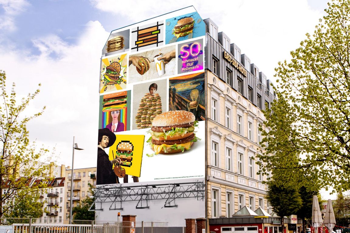 Ein Highlight der Aktion sind außerdem drei ausgewählte OOH Motive, die den Big Mac als Bestandteil der Popkultur inszenieren. Durch einen QR Filter auf dem Boden können Passanten die Motive zum Leben erwecken. Diese sind ab dem 8. April auf großflächigen Platzierungen in Berlin und Hamburg zu sehen.