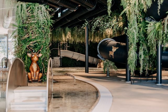 Neben einer Kinderwasserwelt mit Babypool und Kinderbecken samt wasserpritzender Rocky-Figur sind auch eine 70 Meter lange Rutsche mit versteckten Waldtieren und Zeitmessung sowie eine Kinderrutsche und eine Bärenrutsche für Kleinkinder im Kinderbecken entstanden. In der Wasserwerkstatt unterhalten ein Wasserfall, Fontänen und zahlreiche Wasserpistolen  – thematisch spielt das Thema Wald auch hier eine Hauptrolle. Zusätzlich ist die neue Schwimmhalle mit 21 Meter langem Indoor-Pool rund um die Uhr geöffnet.