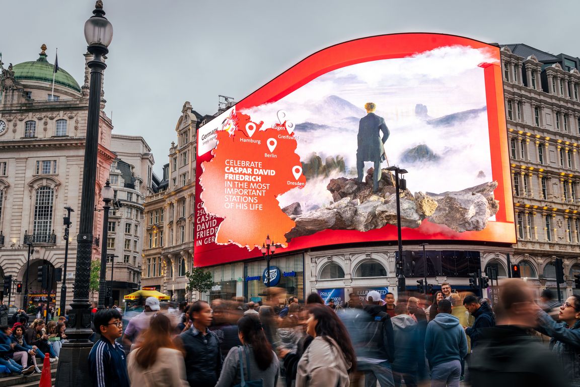 Der Rat für Formgebung hat die von der Deutschen Zentrale für Tourismus (DZT) initiierte 3D-Animation von Caspar David Friedrichs „Wanderer über dem Nebelmeer“ mit dem German Brand Award 2024 in Gold in der Kategorie „Brand Communication – Ambient Media & Outdoor Advertising“ ausgezeichnet. Mit dem 3D-Video warb die DZT London auf Europas größter digitaler Werbefläche am Londoner Piccadilly Circus für das Kulturreiseziel Deutschland. Innerhalb von zwei Wochen erreichte die Installation mehr als 11,6 Millionen Betrachter. Weitere von der DZT eingereichte Kampagnen würdigte die Jury in verschiedenen Kategorien der Disziplin „Excellence in Brand Strategy and Creation“ mit insgesamt vier „Winner-Awards“ und zwei „Special Mentions“.