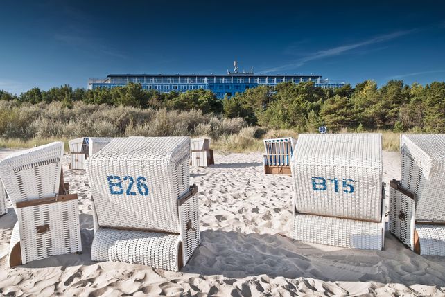 Das Baltic Hotel liegt in Zinnowitz direkt am Meer, nur durch einen Dünenwald vom Strand der sonnenreichsten Insel Deutschlands getrennt. Der Strandkorb stifte Schatten, sei Rückzugsort für die Urlaubslektüre und nicht zuletzt Logenplatz zum Lauschen des Meeresrauschens, wie es das Hotel beschreibt. Ein weiteres Plus sei es, dass der Gang zum Strandkorbverleih hinfällig werde.