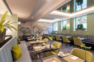 Im Zuge der Komplettrenovierung des Hotels wurden auch alle gastronomischen Bereiche aufgewertet: Während das Restaurant „Vitruv“ mit frischen Farben, Pflanzen, Banknischen und Lichtquellen für eine warme Atmosphäre sorgt, ist die Bar/Lounge „Leo90“ als Teil der offenen Lobby mit Design-Möbeln und einem Arbeitsbereich mitten im Geschehen, wo auch einzelne Events stattfinden können.