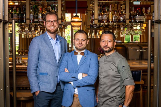 Neue Gesichter im Restaurant Fritz & Felix im Brenner´s Park-Hotel & Spa. Küchenchef Farid Fazel, Restaurantleiter Matthias Pfundstein und Barchef Benjamin Schreiber verwöhnen gemeinsam die Gäste.