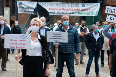 Etwa 300 Gastwirte und Hoteliers aus ganz Niedersachsen machten auf einer Kundgebung an der Hannoverschen Marktkirche ihren Sorgen aufgrund der coronabedingten Einschränkungen Luft und rückten ihre existentiellen Nöte in den Mittelpunkt.