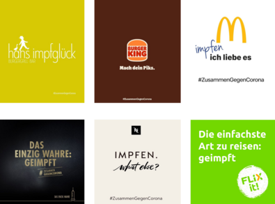 Mehr als 150 bekannte deutsche Unternehmen und Marken rufen gemeinsam zum Impfen auf und setzen dabei auf den Überraschungseffekt verfremdeter Markenslogans. Auch Unternehmen aus der Systemgastronomie sind dabei.