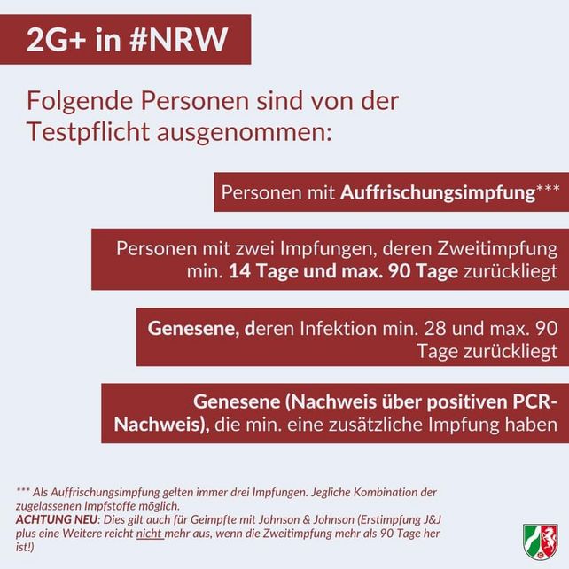Corona Verordnung NRW: Lockerungen bei 2G-Plus-Regel