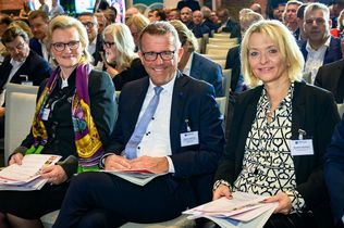 Verlässlicher und starker Partner des DEHOGA ist seit nunmehr 26 Jahren der Initiativkreis Gastgewerbe, der einzigartige Schulterschluss zwischen dem Gastgewerbe sowie der Zulieferindustrie und der Dienstleistungspartner auf Bundesebene. Unter dem Motto „Gemeinsam mehr erreichen“, forderten beim DEHOGA-Branchentag 2022 auch die Vertreter des Initiativkreises Peter Hack, Vorstandsvorsitzender der Hack AG, Dr. Urban Uttenweiler, Vorstandsvorsitzender der HGK, und Stéphanie Appenzeller, Brand Ambassador Hotellerie, Gastronomie, Tourismus, Events von Flyeralarm, von der Politik Planungssicherheit und den Dialog auf Augenhöhe.