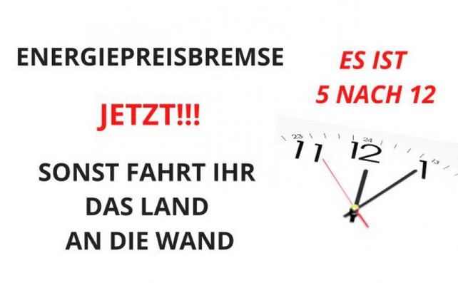 Unter dem Motto «Es ist 5 nach 12!» rief der Verband in einer gemeinsamen Aktion mehrerer Initiatoren, darunter das Gastgewerbe, Handel, Ernährungsindustrie und das Friseurhandwerk dazu auf, vom 12. Oktober an jeweils am Mittwoch um 5 Minuten nach 12.00 Uhr an möglichst vielen Orten in Mecklenburg-Vorpommern auf die «unzumutbare Lage» aufmerksam machen.