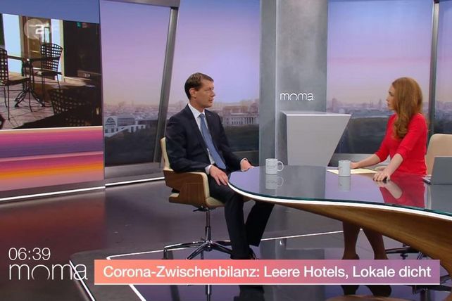 Heute zieht der DEHOGA bei einer Pressekonferenz nach einem halben Jahr Corona-Krise eine Zwischenbilanz. Im Vorfeld war Verbandspräsident Guido Zöllick zu Gast im Morgenmagazin, schilderte die Lage der Branche und stellte Forderungen. Noch immer habe man „erhebliche Umsatzverluste“, sagt der Präsident des Hotel- und Gaststättenverbandes, Guido Zöllick. Die Krise sei „noch lange nicht überstanden.“