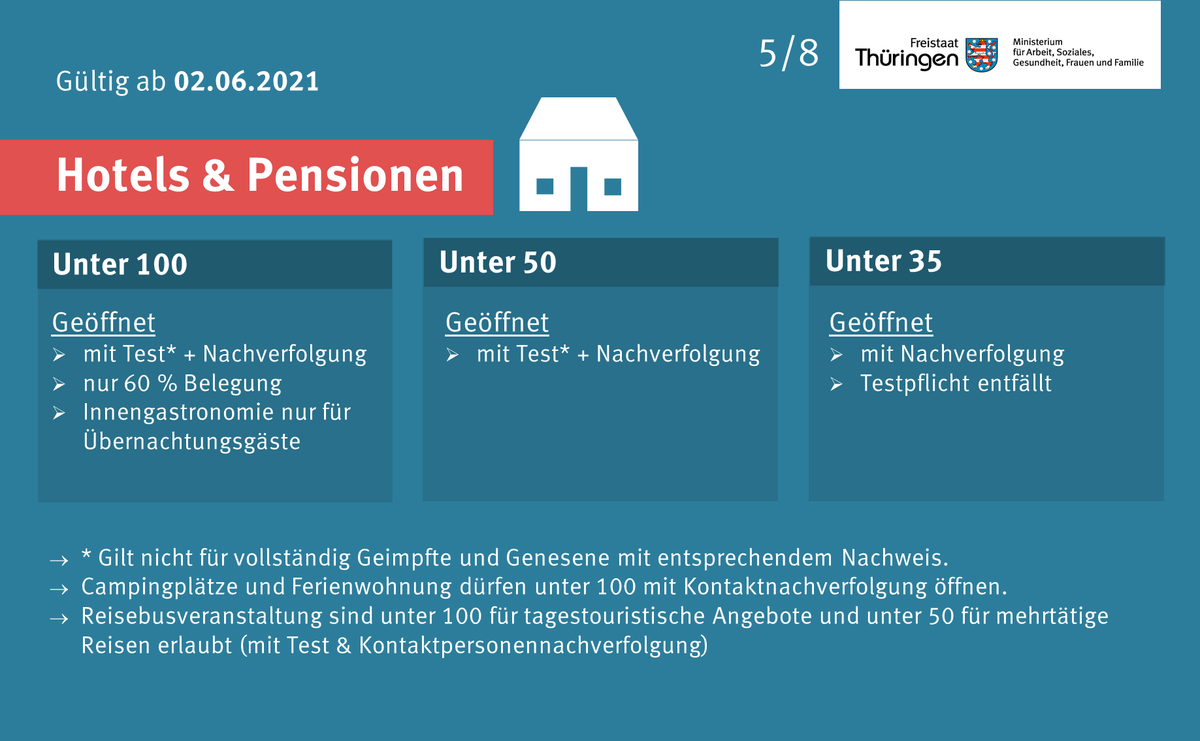 Hotels für touristische Übernachtungen: seit 21.05.2021 geöffnet.