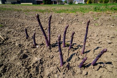 Nach dem grünen und weißen Spargel ist in Beelitz nun auch die Ernte des violettfarbenen Spargels in vollem Gange. Der sogenannte Erasmus schmecke würziger, sei vitaminreicher und der Zuckergehalt höher als beim Weißspargel, sagte Jürgen Jakobs, Inhaber des Jakobs-Hof Beelitz und Vorsitzender des Beelitzer Spargel Vereins.