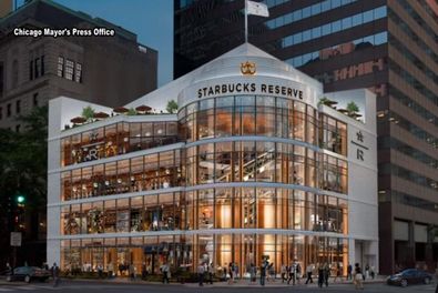 Die Kaffeehauskette Starbucks eröffnet am 15. November in Chicago die weltweit größte Filiale. Die Starbucks Reserve Roastery wird an der Ecke Michigan Avenue und Erie Street künftig auf vier Etagen Gäste begrüßen und sich über mehr als 3.000 Quadratmeter erstrecken.
