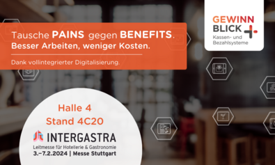 Vollintegration statt Insellösungen! Damit gehen die Kassen-, Bezahlsysteme und Digitalisierungsexperten von Gewinnblick vom 3.-7.2.2024 auf der INTERGASTRA ins Gespräch mit Gastronomen und Hoteliers. Wie mit vollintegrierter Digitalisierung Probleme gelöst werden, bevor Gastronomen sie kennen, ist Fokus des diesjährigen Messeauftritts.