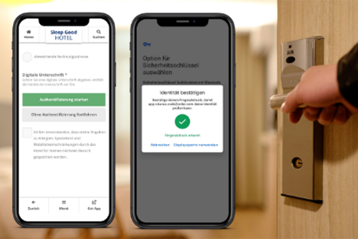 Zudem ist es im Rahmen des Check-in Prozesses möglich, Kreditkartendaten abzufragen und zum Beispiel als Sicherheit zu hinterlegen. Nach dem erfolgreichen Check-in kann die Zimmertüre mit dem eigenen Smartphone und ohne zusätzliche App geöffnet werden.