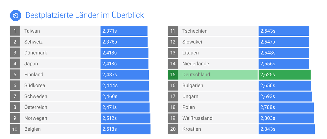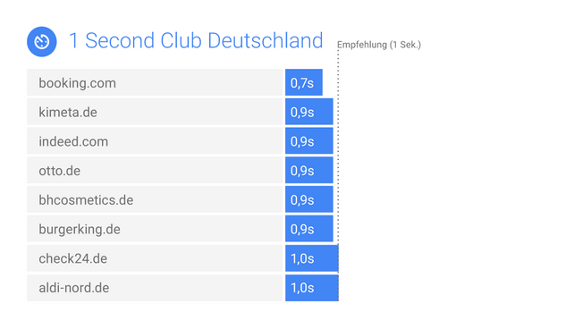 Lädt eine Website zu langsam, ist der Nutzer schnell bei der Konkurrenz. Doch nur fünf Prozent der deutschen Internetseiten laden auf Mobilgeräten in unter einer Sekunde, wie nun eine Untersuchung von Google und der Mobile Marketing Association ergab. Die schnellste mobile Webseite hatte Booking.com, die in nur 0,7 Sekunden Inhalte anzeigt. Burger King schaffte es ebenfalls in die Top 10 mit einer durchschnittlichen Ladezeit von 0,9 Sekunden.