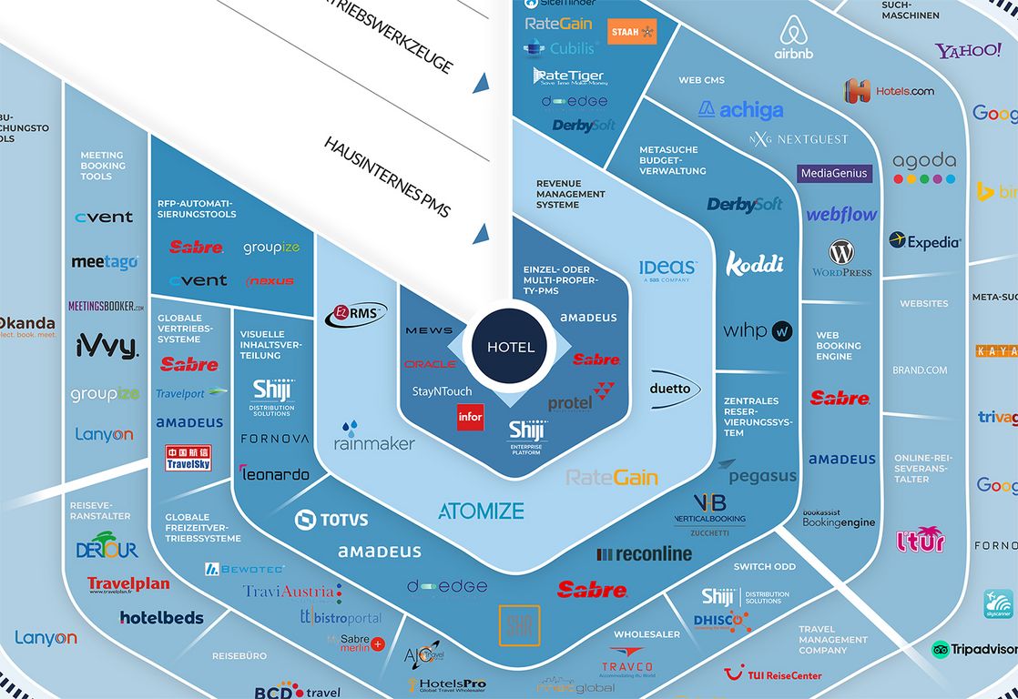 Im nächsten Absatz finden sich die Beschreibungen der einzelnen Bereiche in der Hotel-Tech-Branche, von innen nach außen.