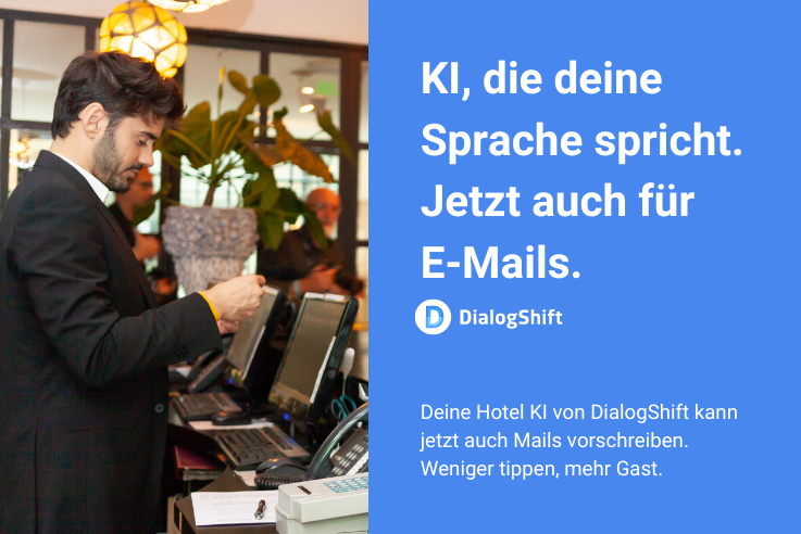 DialogShift, führender Entwickler von KI-basierten Kommunikationslösungen für die Hotellerie, freut sich, die Einführung der neuen Email AI bekannt zu geben. Diese clevere Erweiterung der bereits erfolgreichen GPT-basierten Chatbots unterstützt Hotelmitarbeitende bei der Email-Kommunikation. Die Email AI verkürzt den Zeitaufwand für die Bearbeitung eines E-Mail Dialogs mit dem Gast von acht auf drei Minuten und steigert somit deutlich die Produktivität. Die KI verfügt über hotelspezifisches Wissen und schreibt in Sekundenschnelle Emails in der Tonalität des Hotels und in mehr als 100 Sprachen.
