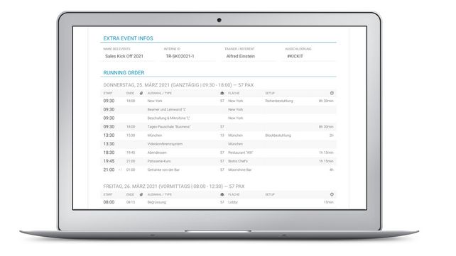 Eventmachine, eine Plattform für online Event-Planung und automatisierte Angebote, will Hoteliers mehr Zeit verschaffen. Dafür verschlankt das Unternehmen die aufwendige Vorbereitung von Veranstaltungen indem es die Erstellung von Ablaufplänen und Function Sheets komplett automatisiert. „Was früher stundenlange Detailarbeit für den Hotelier bedeutete, erledigen Gastgeber jetzt mit wenigen Klicks“, freut sich Florian Zelfel, Geschäftsführer von eventmachine.