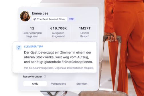 Die Smart Tips sind direkt im Gästeprofil – einem der meistgenutzten Bereiche im Property Management System – sowie im Reservierungskalender eingebunden. So fügen sie sich nahtlos in den Arbeitsalltag ein und sparen wertvolle Zeit. Teams müssen nicht mehr zwischen verschiedenen Systemen wechseln oder Informationen aufwendig zusammensuchen.