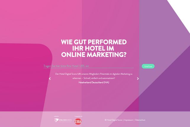 Wie gut performt mein Hotel im Online Marketing? Mit dem Hotel Digital Score gibt Online Birds eine Antwort darauf, wie gut ein Hotel im weiten Feld des Digitalmarketings wahrgenommen wird. Der Hotel Digital Score ist ein Analyseportal zur messbaren Online-Performance eines Hotels.