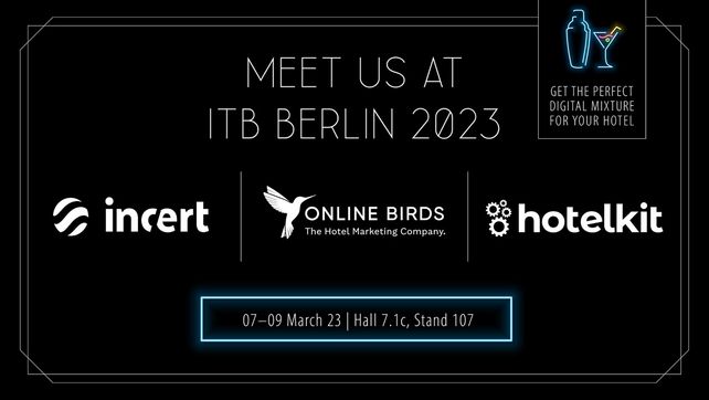 "Es freut uns, 2023 bereits zum sechsten Mal bei der ITB vertreten zu sein. Diesmal gemeinsam mit zwei starken Partnern für die Hotellerie: incert und Online Birds. Gemeinsam schaffen wir es mit diesen drei Lösungen eine große Bandbreite abzudecken und sowohl den internen Arbeitsalltag zu vereinfachen, als auch das Gästeerlebnis zu maximieren. Wir freuen uns auf viele neue Impulse und den persönlichen Austausch!"