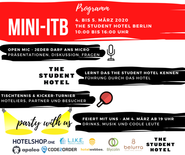 Nach der Absage der ITB in Berlin, haben sich 16 Technologieanbieter zusammengetan und veranstalten eine eigene Messe im „The Student Hotel“ in Berlin Mitte. Die „Mini-ITB“ steigt am 4. und 5. März, jeweils 10 bis 16 Uhr.