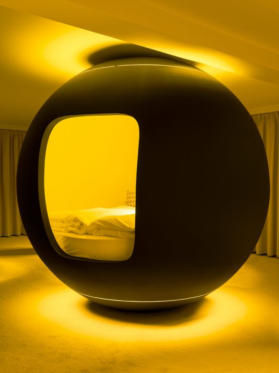 Das YW:OR Penthouse überrascht mit zwei Schlafkugeln, Designer-Möbeln und einer Dachterrasse mit Whirlpool, Grill und fast kitschigem Meran-Rundumblick. Hier erholen sich YW:OR-Mitglieder von den Re:Guest-Schulungen und tauchen in die reale gelbe Softwarewelt ein. Insgesamt können bis zu vier Personen im YW:OR ungestörtschlafen und feiern.