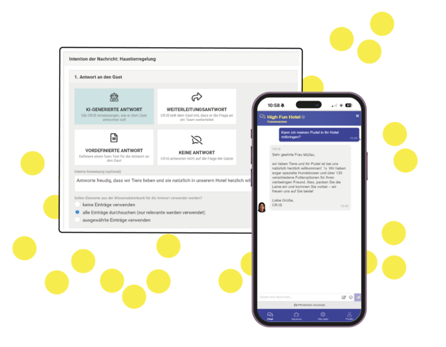 CR:IS, „der erste virtuelle Hotelmitarbeiter“, ist ein kognitiver Chatbot, der entwickelt wurde, um das Hotelteam zu unterstützen, indem er eigenständig auf Gästeanfragen antwortet und Buchungsanfragen erleichtert. CR:IS kann in Bezug auf Namen und Profilbild personalisiert werden und entwickelt sich kontinuierlich weiter, um einen immer autonomeren und umfassenderen Service zu bieten. Er kann 24 Stunden am Tag in mehreren Sprachen, auch über WhatsApp, mit den Gästen interagieren und den Kommunikationsstil des Hotels übernehmen. Darüber hinaus leitet CR:IS Anfragen an die entsprechenden Hotelabteilungen weiter und arbeitet mit ihnen zusammen, um die Betriebseffizienz zu verbessern. In der Zukunft wird CR:IS nicht nur Fragen beantwortet, sondern auch spezifische Aufgaben eines Hotelarbeitstages ausführen, wie z.B. Angebote erstellen, Buchungen und Spa-Dienste bestätigen oder Bestellungen für Speisen und Getränke annehmen.