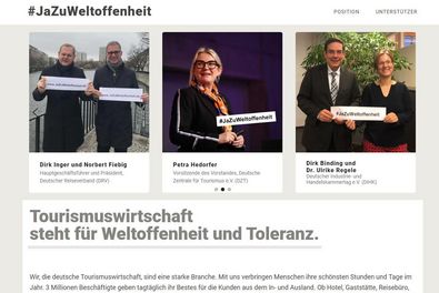 Die deutsche Tourismusbranche startet mit einem Bekenntnis zu Weltoffenheit und Toleranz ins Jahr 2019. Unter dem Motto „Ja zu Weltoffenheit“ veröffentlicht die Branche unter www.jazuweltoffenheit.de ein Positionspapier, in dem sie sich zu den Werten Weltoffenheit, Vielfalt und Toleranz bekennt.