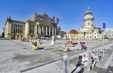 Neues Pflaster, unterirdische Leitungen und Regenwassermanagement: Am Gendarmenmarkt im Herzen Berlins ist einiges neu. Nicht alles ist auf Anhieb zu sehen.