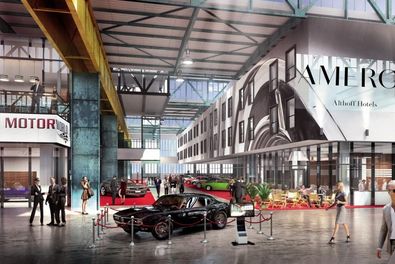 Die Motorworld in München-Freimann erstreckt sich über 75.000 Quadratmeter mit 19 Tagungsräumen, vier Eventhallen, sieben Gastro-Betrieben, einem Clubhaus und einem Hotel mit 156 Zimmern. Ursprünglich war die Eröffnung für Anfang 2019 geplant, jetzt soll sie im Frühjahr über die Bühne gehen.