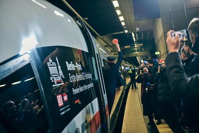 Bisher sind Berlin und Paris auf der Schiene nur mit einem Nachtzug verbunden. Nun kommt ein direkter ICE hinzu. Die Premierenfahrt vom Berliner Hauptbahnhof startete mit viel Tamtam.
