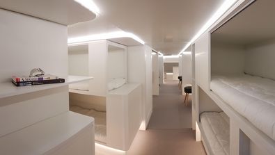 Auf langen Flügen können sich die Crew-Mitglieder in spezielle Räume zurückziehen und schlafen. Die Passagiere bekommen diese Schlafgemächer allerdings nie zu sehen. Nun hat jedoch Airbus ein Konzept entwickelt, um den Frachtraum unter der Passagierkabine mit Schlafkojen auszustatten.