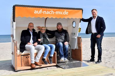 Seit 2014 bietet das Seebad Warnemünde einen der modernsten Strandzugänge in Mecklenburg-Vorpommern. Seither wurde das Angebot um barrierefreie Toiletten und Parkplätze in direkter Strandnähe erweitert. Ab sofort wird das Ganze noch um einen barrierefreien Strandkorb ergänzt.