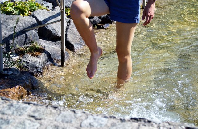 «Normalerweise treffen wir uns hier immer donnerstags und marschieren im Storchengang ein paar Runden durchs Becken», erzählt Elisabeth Juhls. «Das ist gut für die Durchblutung», sagt die Vorsitzende des Kneipp-Vereins in Bad Segeberg. Für die 72-Jährige ist Kneippen so selbstverständlich wie Zähneputzen. Sie testet die Wassertemperatur: eisige 8 Grad Celsius. «Ach, heute verzichte ich mal.»