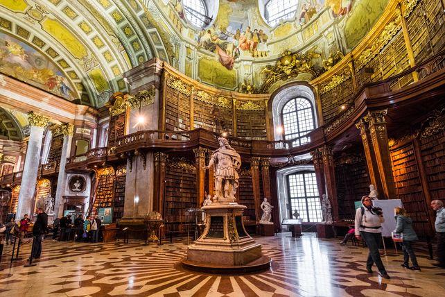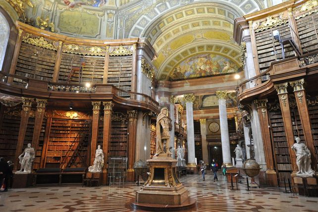 1. Prunksaal der Österreichischen Nationalbibliothek: Die Österreichische Nationalbibliothek sollte definitiv auf jeder Besichtigungsliste stehen: Der Prunksaal, das Herzstück des Gebäudes, ist einer der prächtigsten Bibliothekssäle der Welt. Der barocke Saal ist 80 Meter lang und 20 Meter hoch und versetzt mit seiner imposanten mit Fresken verzierten Kuppel jeden in Staunen. Mehr als 200.000 Bände stehen im Saal und rauben nicht nur Leseratten den Atem. Vorbeischauen und das spektakuläre Ambiente in sich auf aufsagen - das sollte niemand auf seinem Städtetrip in Wien verpassen. 107 Bewertungen - durchschnittliche Bewertung: 4.8