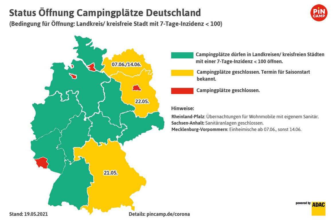 Zu Pfingsten ist Camping unter Auflagen wieder größtenteils möglich. Doch bei aller Freude über die wiedergewonnene Campingfreiheit: Es gibt nur noch wenige freie Plätze. Vor allem in Deutschland melden viele Campingbetriebe zu Pfingsten: "Ausgebucht!" Camping-Experte Uwe Frers, Geschäftsführer von ADAC Camping, befürchtet einen großen Andrang auf die letzten freien Campingplätze und warnt: "Wer ohne Standplatz-Reservierung losfährt, wird keinen Platz mehr finden und muss wieder nach Hause zurück."