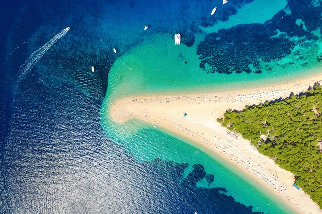Einer der Top-Strände auf der Insel Brač ist der Zlatni Rat. Zum „Goldenen Horn” ‒ wie der Strand auf deutsch genannt wird ‒ gelangen Reisende von Split aus mit der Fähre. Trotz seiner Popularität ist der Strand ein echtes Juwel mit seinem gold-schimmernden Feinkies, türkisblauem Wasser und dem Duft von Kiefern. Bei einem Ausflug können Urlauber das nahegelegene Höhlenkloster Blaca besichtigen und sogar eine geführte Tour durch sein Inneres  machen.