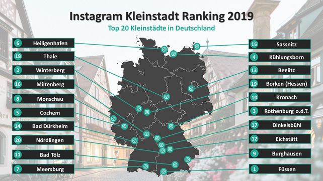 Bereits zum dritten Mal hat Travelcircus 1.012 deutsche Kleinstädte anhand der Anzahl ihrer Instagram-Beiträge analysiert und veröffentlicht nun ein Update. Welche Städte sind nach oben geklettert und welche mussten Plätze einbüßen?