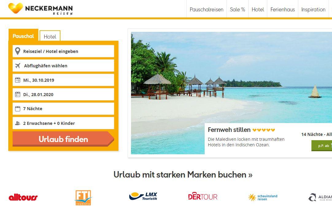 Knapp einen Monat nach dem Insolvenzantrag von Thomas Cook Deutschland können über die Website Neckermann-Reisen.de nun wieder Urlaubstouren gebucht werden. Das Portal verkauft derzeit aber keine Thomas-Cook-Angebote, sondern bietet ausschließlich Reisen von Drittanbietern an.