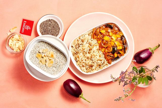 Das pflanzliche Kochbuch von Emirates umfasst über 170 Rezepte, um den veganen Gästen eine möglichst große Auswahl zu bieten. Das Team aus Ernährungswissenschaftlern und Köchen verwendet bei der Kreation der Speisen nur frisches Gemüse und besondere Getreide-Sorten. Emirates ist für seine regional inspirierte Bordkulinarik bekannt und verfolgt bei seinen pflanzlichen Gerichten denselben Ansatz. Zu den beliebtesten Gerichten gehören etwa Ravioli mit Pilzfüllung, in der Tajine geschmortes Gemüse mit Couscous sowie ein Süßkartoffel-Linsen-Spinatragout mit braunem Reis. Die Hauptspeisen werden durch gleichermaßen vegane Desserts wie Limonen-Parfait mit Dattel-Zitronen-Kompott, Schokoladenkuchen mit flüssigem Kern oder Chia-Pudding ergänzt.