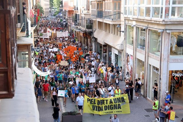 Tausende Menschen haben auf Mallorca erneut gegen Massentourismus protestiert. Rund 8.000 Menschen zogen nach Polizeischätzung am Abend vom Platz Plaça d'Espanya im Zentrum der Inselhauptstadt Palma zur Flaniermeile Passeig del Born. Dort fand die abschließende Kundgebung statt.