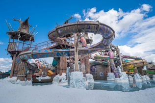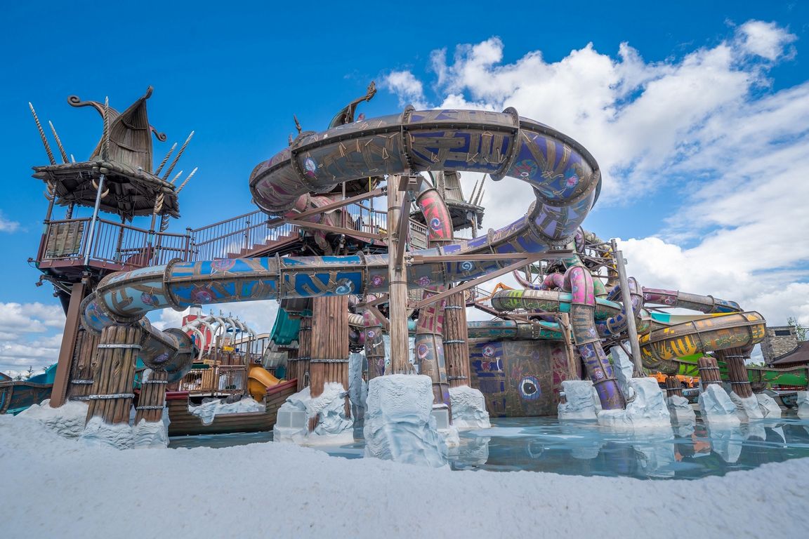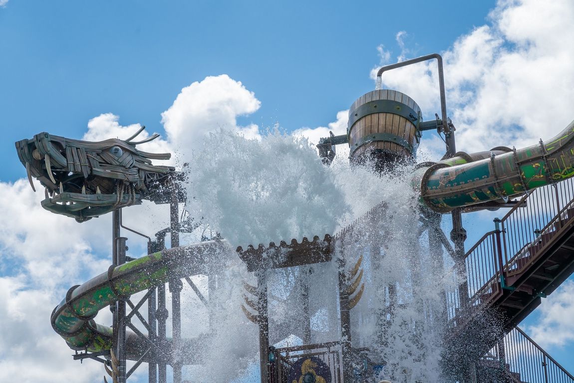 Eingebettet garantieren zudem zehn Rutschen Wasserspaß für die ganze Familie: Die Trichterrutsche „Stormrok“ startet von ganz oben und lässt Wasserratten bereits kurz nach dem Einstieg verschwinden, bevor es im Kreis herum nach unten geht. Ein Duell ist auf der Doppelrutsche „Vågorrok“ sicher. Dabei verschaffen kleine Drops nochmal extra Geschwindigkeit. Die Röhrenrutsche „Slalomrok“ ist für alle das Richtige, die es gern kurvig mögen. Eine unerwartete Abkühlung verschafft Landratten ein gewaltiger „Tipping Bucket“. Denn es ist nur eine Frage der Zeit, bis der mit 2.500 Litern Wasser gefüllte Eimer überläuft.