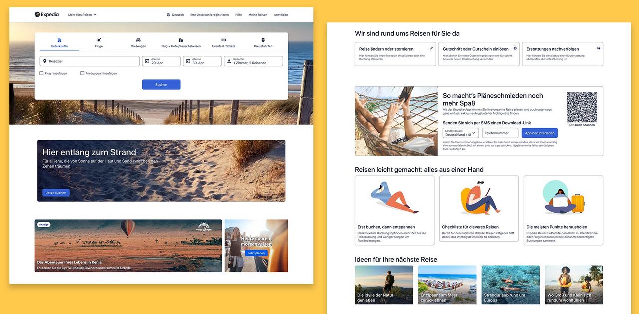 Kernstück ist ein neues Design. Die Produktauswahl ist zudem darauf ausgerichtet, dass Reisende eine komplette Reise auf einer einzigen Plattform zusammenstellen können. Dazu zählen Flüge, Unterkünfte, Mietwagen und Aktivitäten. Zudem führt Expedia einige Neuerungen ein: